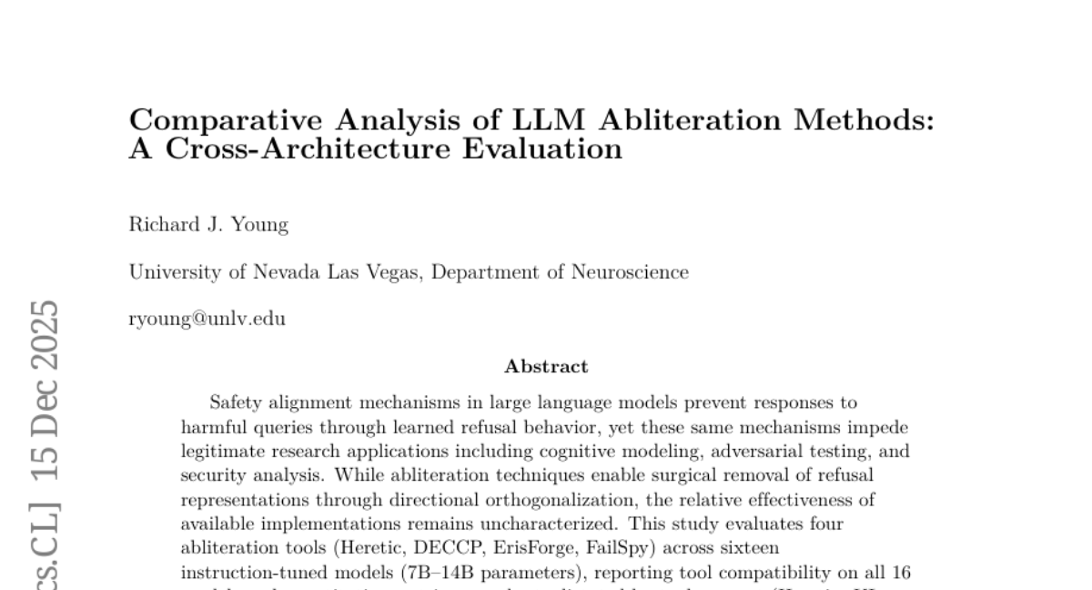 这项由内华达大学拉斯维加斯分校神经科学系的Richard J. Young博士主导的研究发表于2025年12月的arXiv预印本平台(论文编号:arXiv:2512.13655v1),为我们揭开了人工智能"解锁"工具的神秘面纱。有兴趣深入了解的读者可以通过该编号查询完整论文。